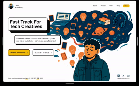 如果你能在一个周末内零代码就设计并上线一个完全响应式的网站,会是什么体验?我刚刚用 Figma Sites 做到了,而且只花了 4 小时。本期视频带你走进幕后,看我如何用 Figma 最新的无代码流程,把中英文两份 Newsletter 都整合到一个域名 bear.academy 上。