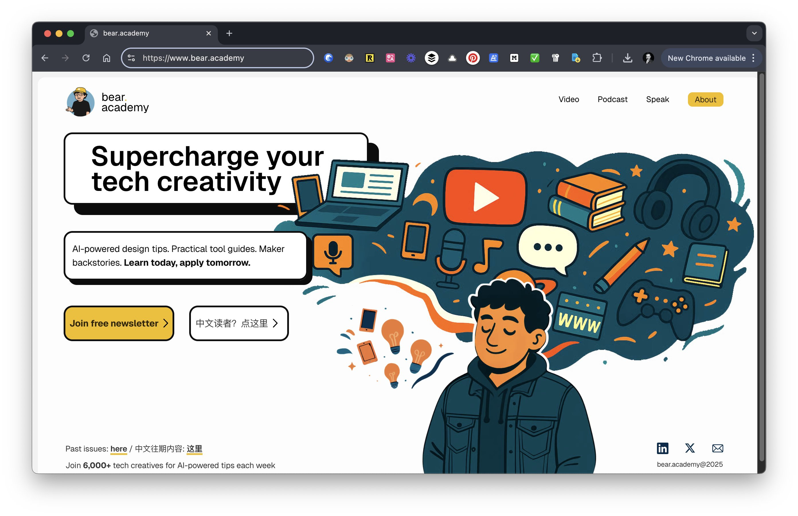 《Bear学习派》是我每周通过邮件发出的关于科技、设计与效率的中文心得分享,涵盖好书解析、学习经验和职业感悟,完全免费!