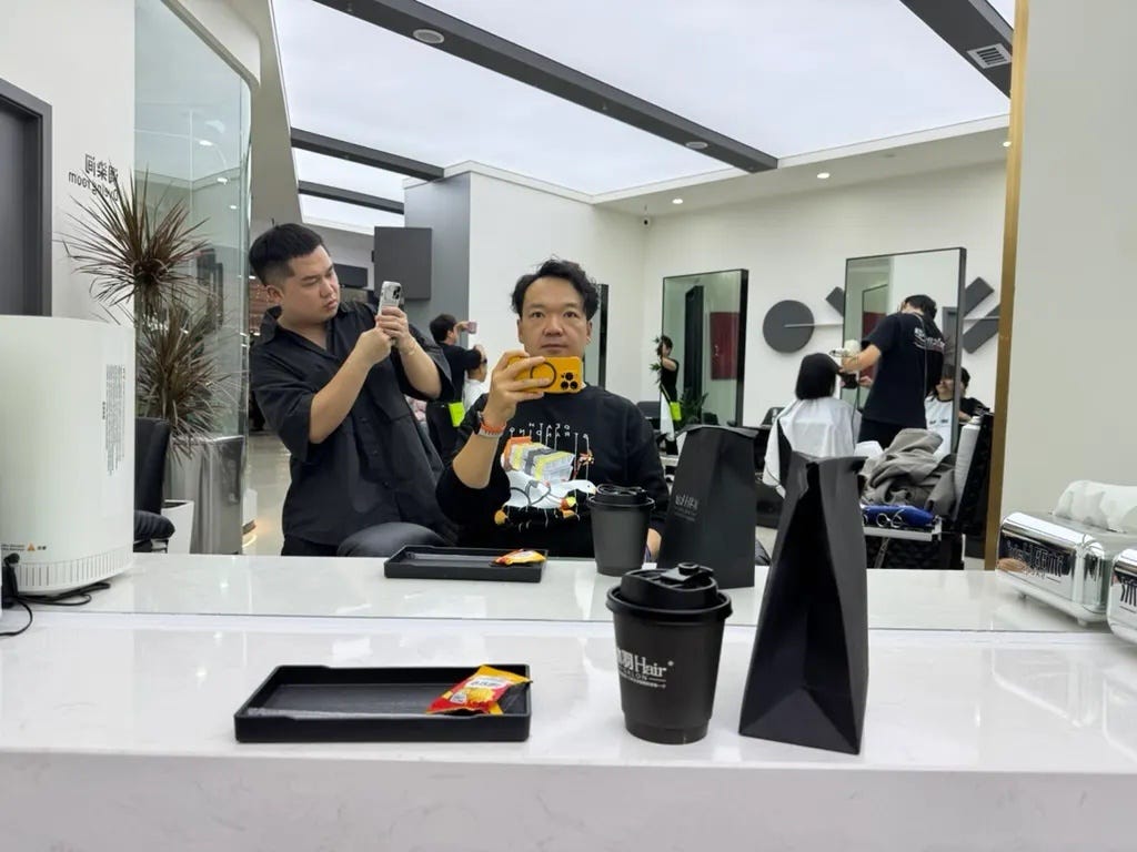 剪完头后,如果顾客好说话,Tony老师就会请顾客给打个分点评一下。再拍个照片上传,既有”买家秀”,又有”五星好评”。