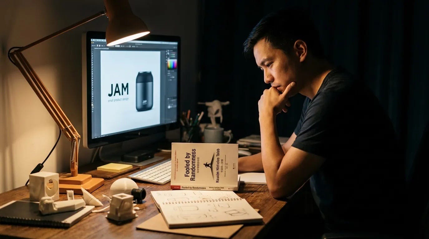 最近我一边读塔勒布的《随机漫步的傻瓜》,一边打磨自己的小产品 JAM,感觉整个人都被「随机性」这件事反复教育。这一期里,我会先从这本书聊起:为什么我们总是事后给人生硬编一条完美的逻辑链;再聊一次出海活动上听到的投资人视角——他们真正关心的,其实是留存和长期价值,而不是一时的漂亮数据。同时也会对比一下云端经济和泥土经济两条轨道,在这样的时代,做一个小而专注的产品意味着什么。最后,回到 JAM 界面设计中的一些实战心得:当设计和代码的边界被 AI 模糊之后,懂结构的设计师,反而会更自由。希望这封 Newsletter,能给你一点关于学习、创业和设计的小启发。
