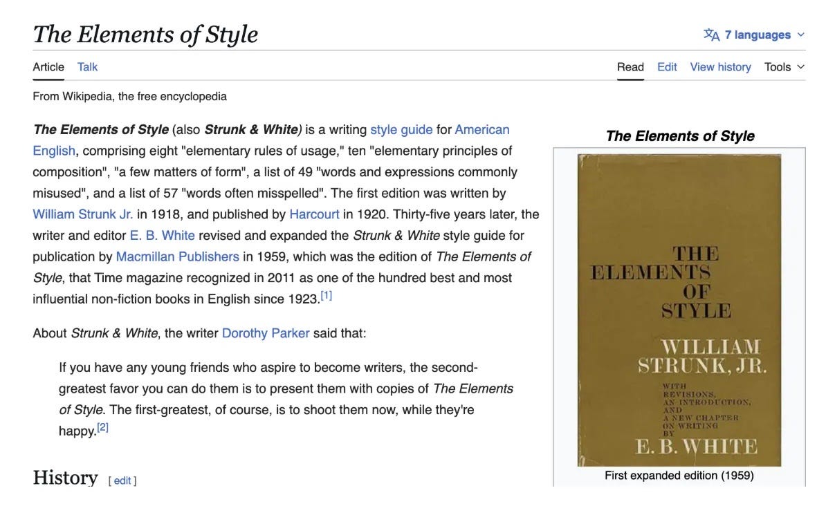 昨天读完了著名的语言学习书籍《风格的要素》(The Element of Style),最后一章非常精彩。实际上从第一章过后,就有很多非常具有启发性的观点。