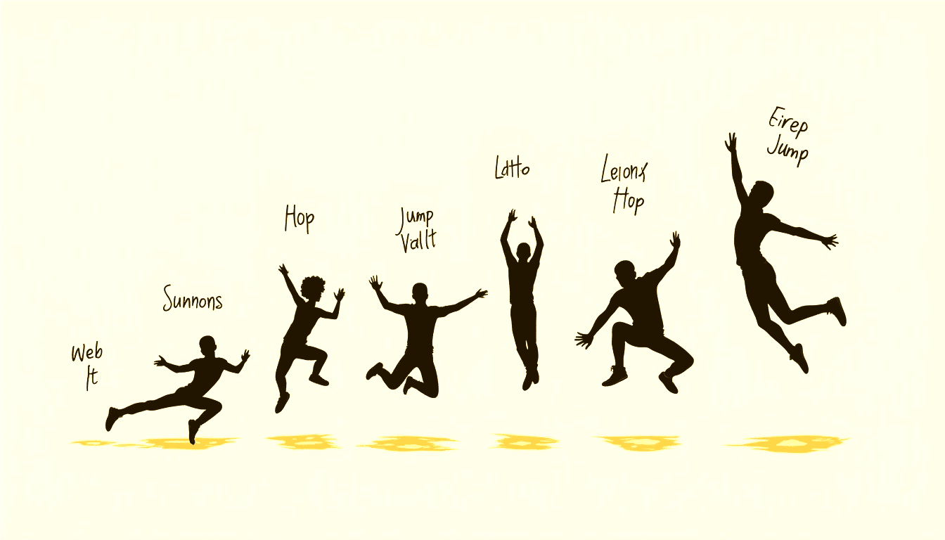 Hop(蹦 / 跳跃) - 轻巧的小跳,通常指单脚或连续短跳。